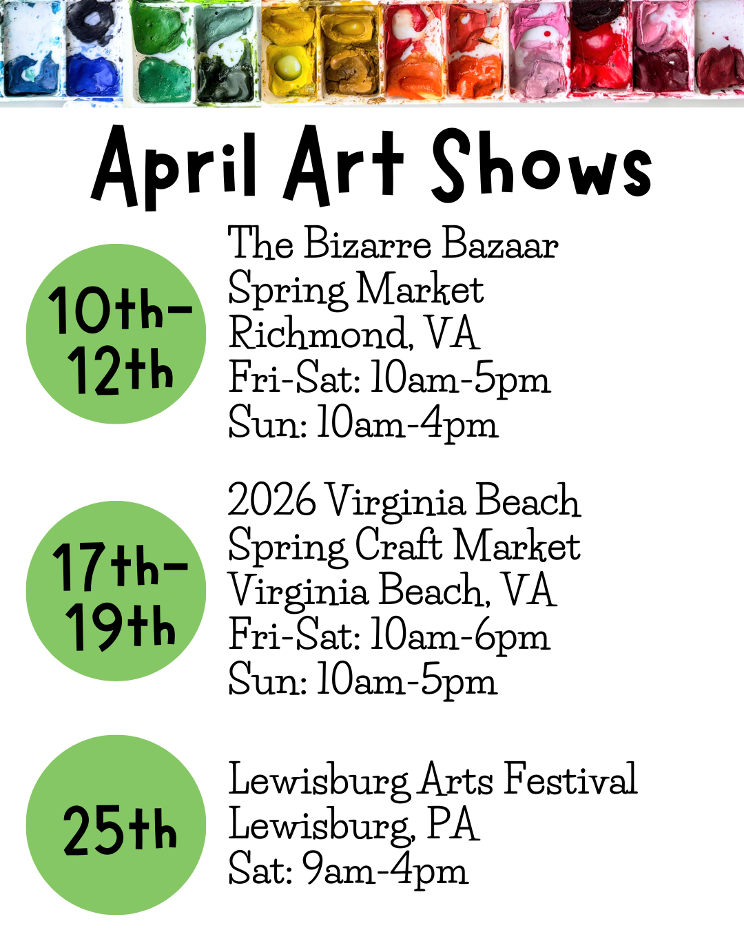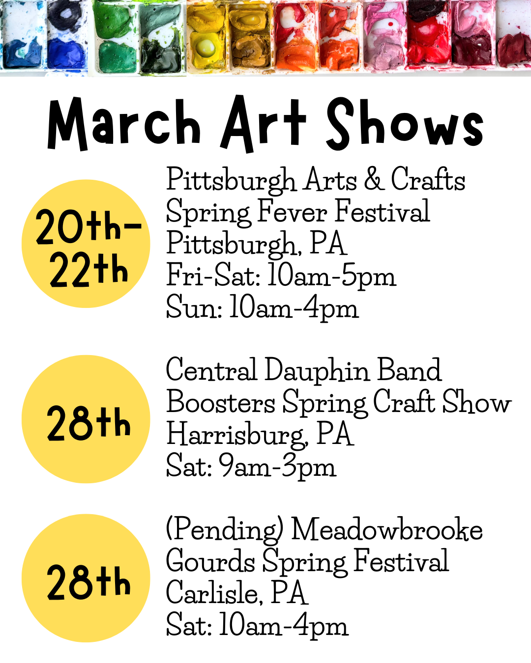 Upcoming Art & Craft Shows