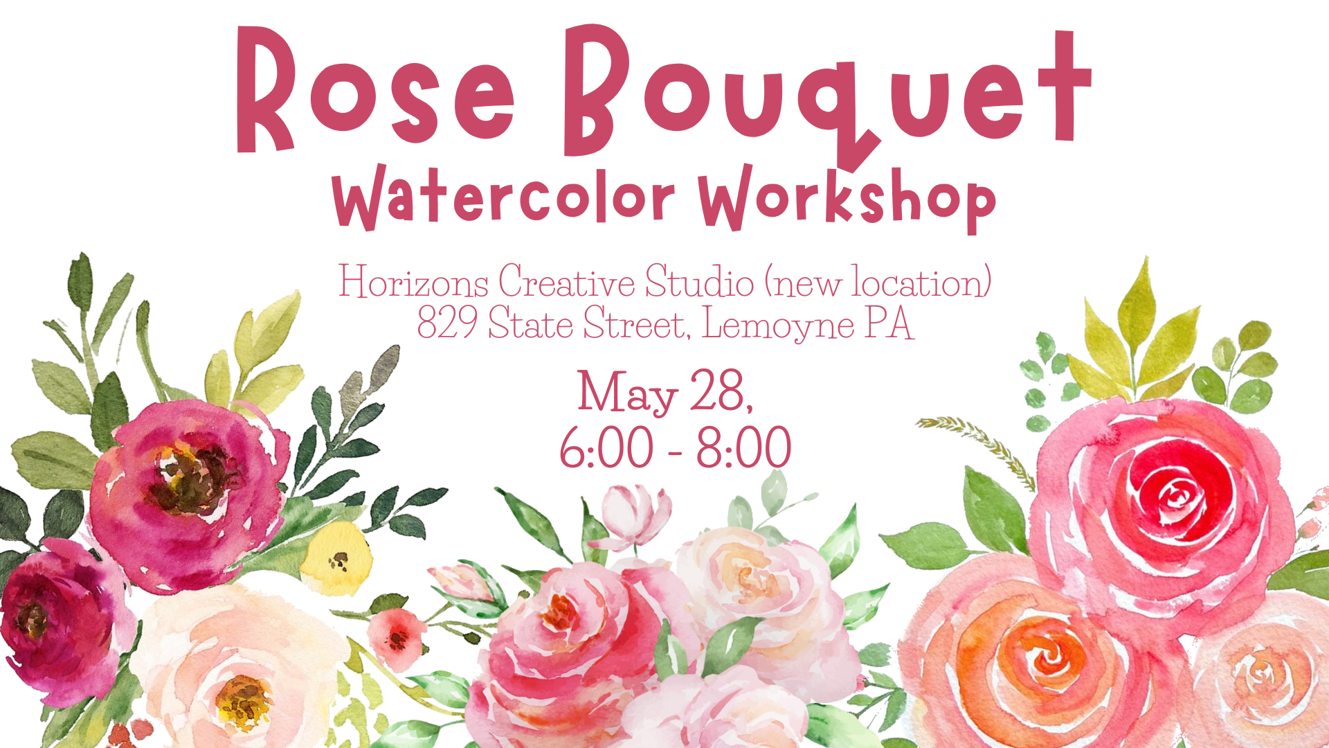 Join Hannah of Owlfeathers Watercolor to use watercolor to paint a beautiful rose bouquet! This beginner friendly workshop begins with a small group demonstration followed by one-on-one individualized guidance for each painter. Get out and do something fun to welcome in the Spring weather!
