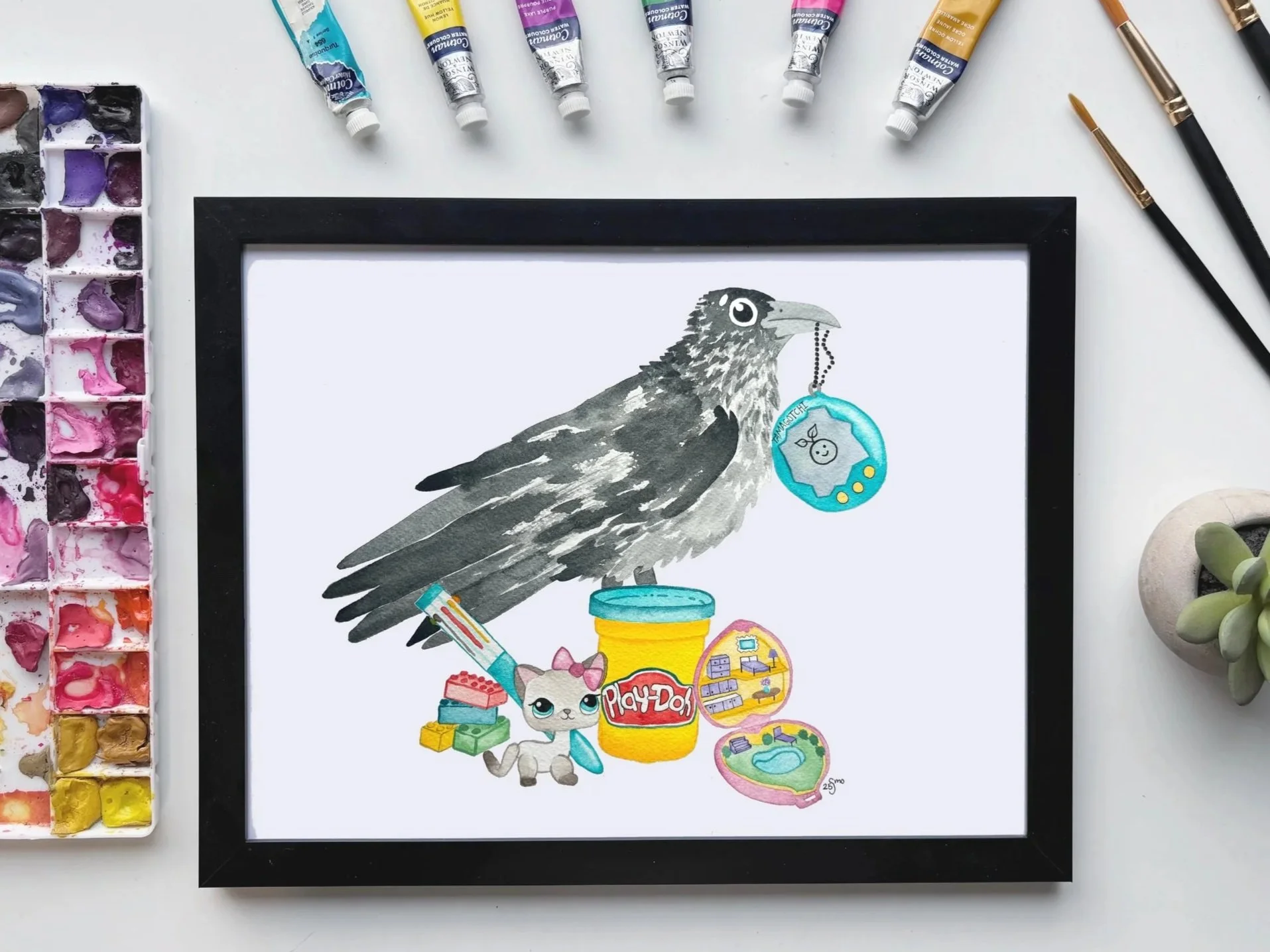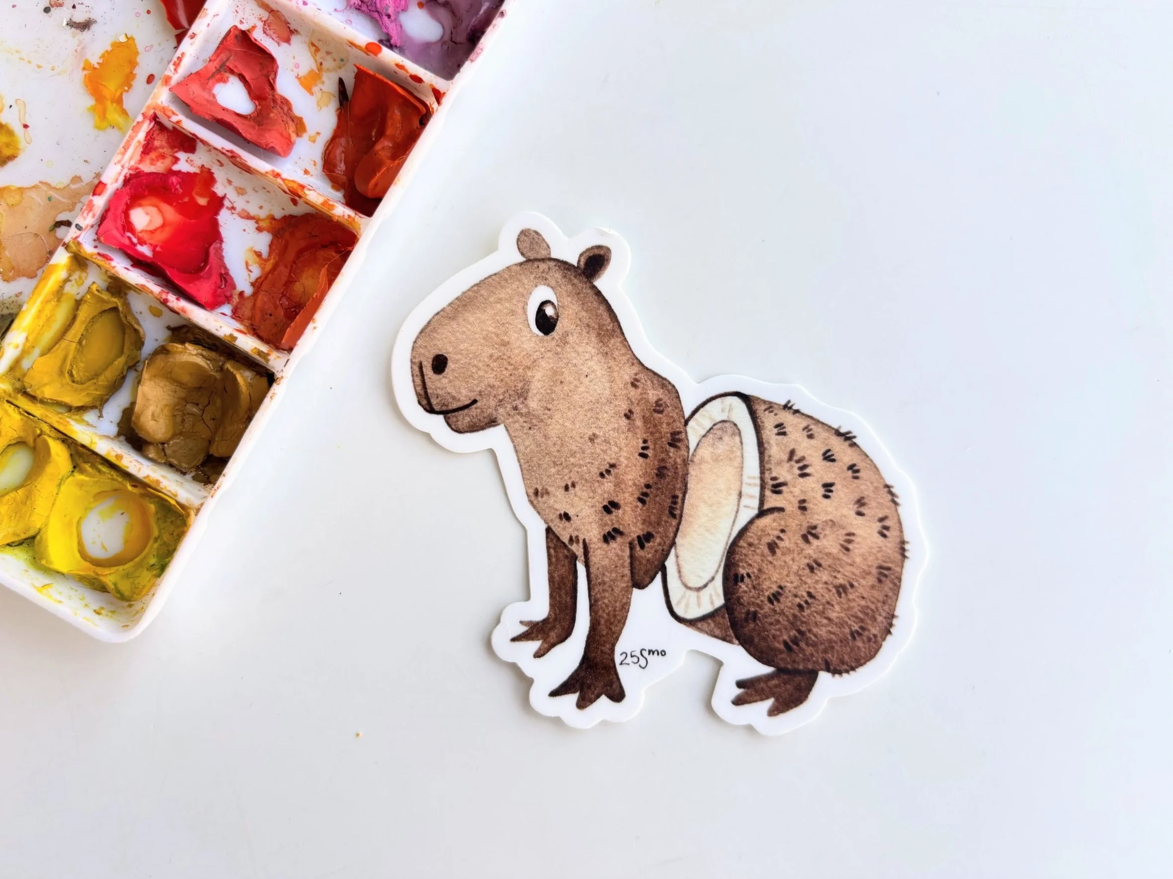 All art was originally watercolored by myself, before being made into a sticker, card, keychain, pin, etc.! Check out my instagram: @owl.feathers for more.